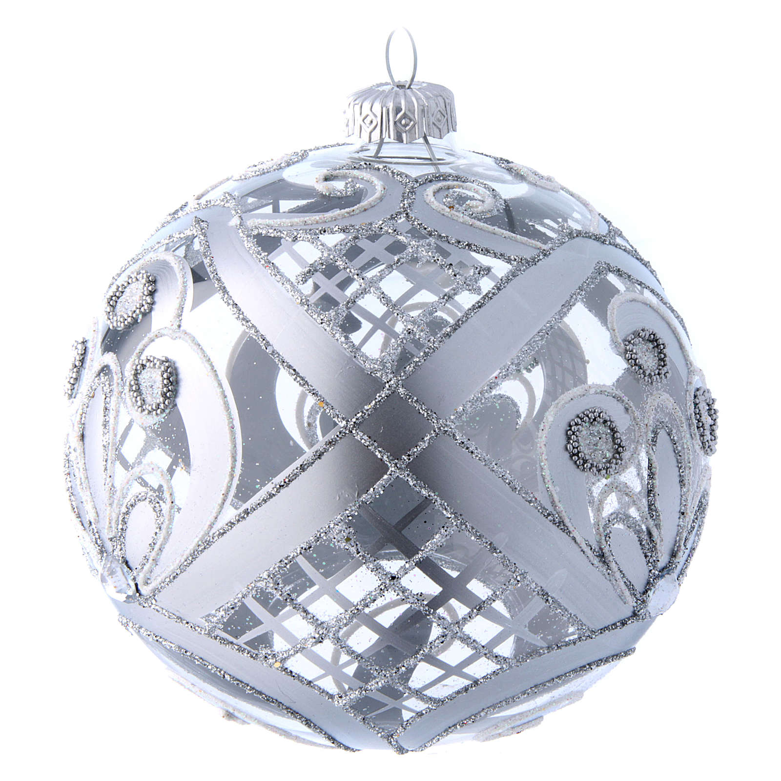 Christmas Decoration In Transparent Glass With Silver Decoration 120 Mm