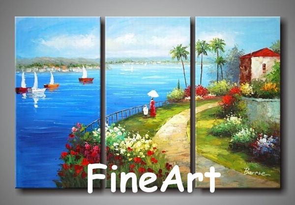 2019 Handmade Canvas Art Set 3 Mediterranean Landscape Oil Painting Wholesale Canvas Painting Ideas Decoration Of The Walls In The Bedroom From