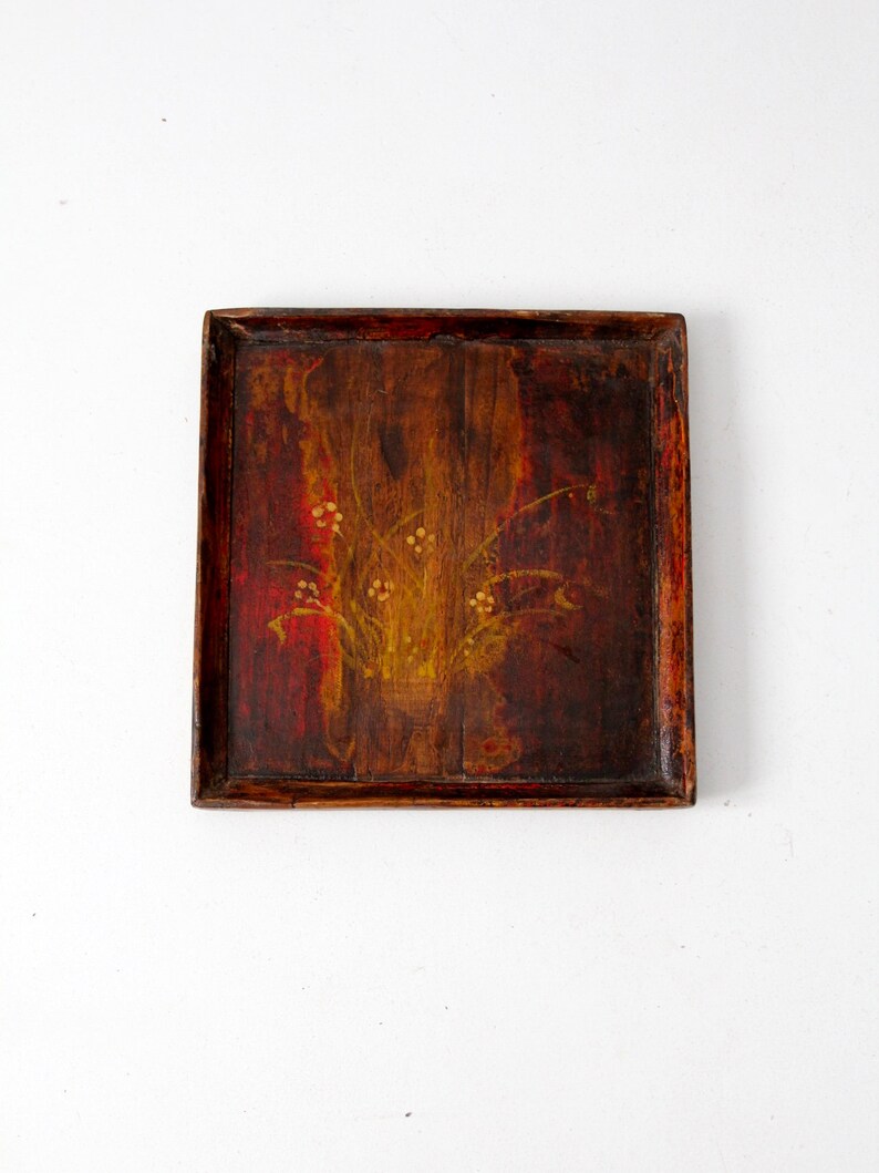Details About Vintage Hand Painted Wooden Tray Folk Art Serving Tray Round Tray Vintage Decor